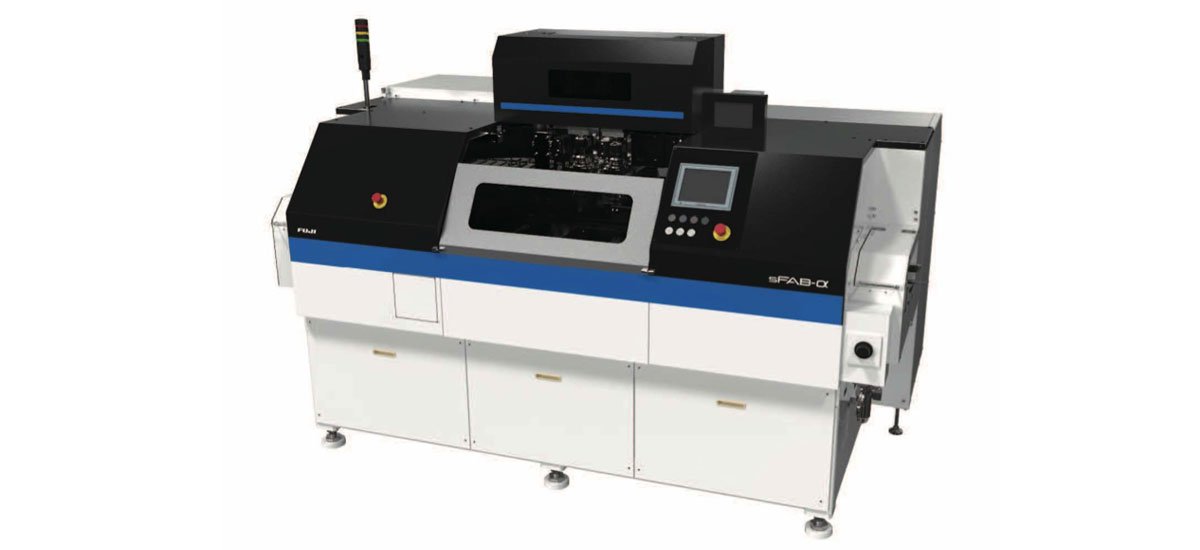 - sFAB-D, die automatisierte Mehrzweck-Fertigungsmaschine, unterstützt flexibel verschiedene Teilegrößen, Formen und Anlieferarten von bedrahteten Bauteilen, bis hin zu großen speziellen Bauteilen wie Trafos etc.